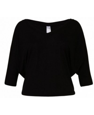 Široký výstřih do "V", 1/2 rukávy, uvolněný tvar, volný kratší střih.