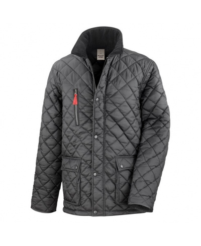 Manšestrový límec, dvoucestný zip s légou s patentkami, kapsa na zip na hrudi (s červenou zarážkou), zateplené boční kapsy na patentky, větrací otvory v dolní zadní části, vhodná pro výšivku.