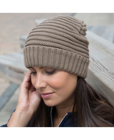 Komfortní elastický materiál, dekorativní ohrnutý pletený lem, uvnitř černý kontrastní Polartherm™ fleece, super teplá.