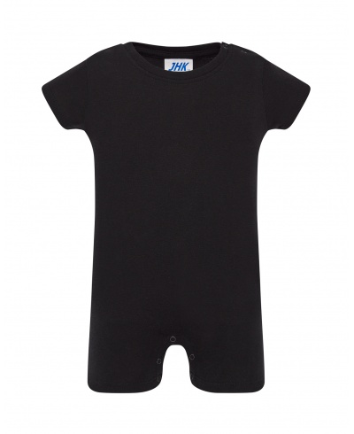 Krátké rukávy, zapínání na cvočky na rameni a v rozkroku, 1x1 žebrování okolo výstřihu, odnímatelná cedulka.