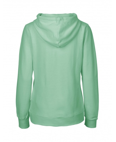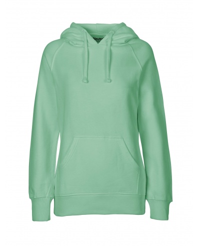 Materiál: 100% bio bavlna "Fairtrade Cotton", fleece, vnitřní strana počesaná; Gramáž: 300 g/m²; Dámský střih, styl "casual". Zpevňující páska za krkem, klokaní kapsa. Kapuce s dvojitým lemováním a šňůrkami na stažení. Žebrované manžety na rukávech a v pase. Kvalitní prstencová bavlna; Certifikáty: OEKO-TEX® STANDARD 100, 100% CERTIFIED ORGANIC COTTON, FAIR WEAR, EU ECOLABEL, SA8000, NEUTRAL® RESPONSIBILITY