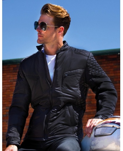 Moderní prošívaný styl, lehká a teplá, lehce odolná proti vodě a větruodolná, límec na cvoček a manžety, poutko na zavěšení, zip po celé délce, náprsní a postranní kapsy na zip, vícenásobné prošití, biker slim fit styl, přístup pro dekoraci na levé hrudní části a přes spodní lem.