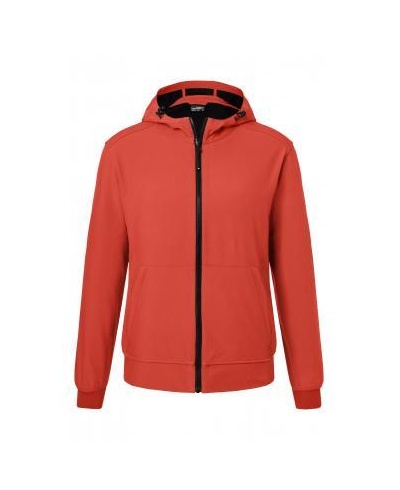 Kapuce se stahovací šňůrkou, dvouvrstvý softshell s kontrastní podšívkou ze síťoviny, elastický pas a manžety rukávů, odolnost vůči vodě a nečistotám díky BIONIC-FINISH®ECO, našitá klokaní kapsa na zip, vnitřní kapsa, zip YKK po celé délce.