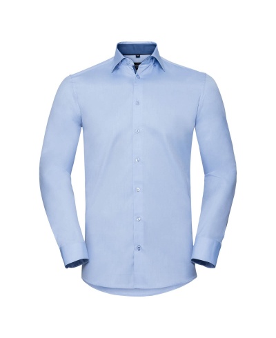 Gramáž: 130 g/m² (White: 125 g/m²); Materiál: 84% bavlna, 16% polyester; Pánská košile s kontrastním proužkem; Speciální úprava "Easy Care". Límeček lze připnout dole pomocí knoflíčků, kontrastní barva na vnitřní straně límce a manžet, kontrastní barva na spodní straně légy na knoflíky, manžety na 2 knoflíky, zaoblený spodní lem, přiléhavý střih, zužující švy na zádech; Certifikáty: STANDARD 100 by OEKO-TEX®; WRAP