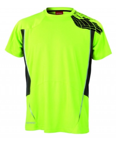 Prodyšná látka, výztužná páska u krku v kontrastní barvě, logo Spiro na levém rameni, na bocích kontrastní vsadky s reflexními pruhy, síťová vnitřní část na zádech pro lepší větrání, dvojité prošití rukávů a dolního okraje, boční švy, vhodná pro potisk nebo vyšívaní.