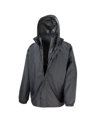 Voděodolná a větruvzdorná (2.000 mm), plně podlepené švy, plně integrovaná kapuce, dvě přední kapsy s klopou, vnitřní náprsní kapsa na pravé hrudi vnější bundy, dlouhý zip s klopou proti větru, nastavitelné elastické manžety, vhodná pro transferový, přímý tisk a vyšívání.